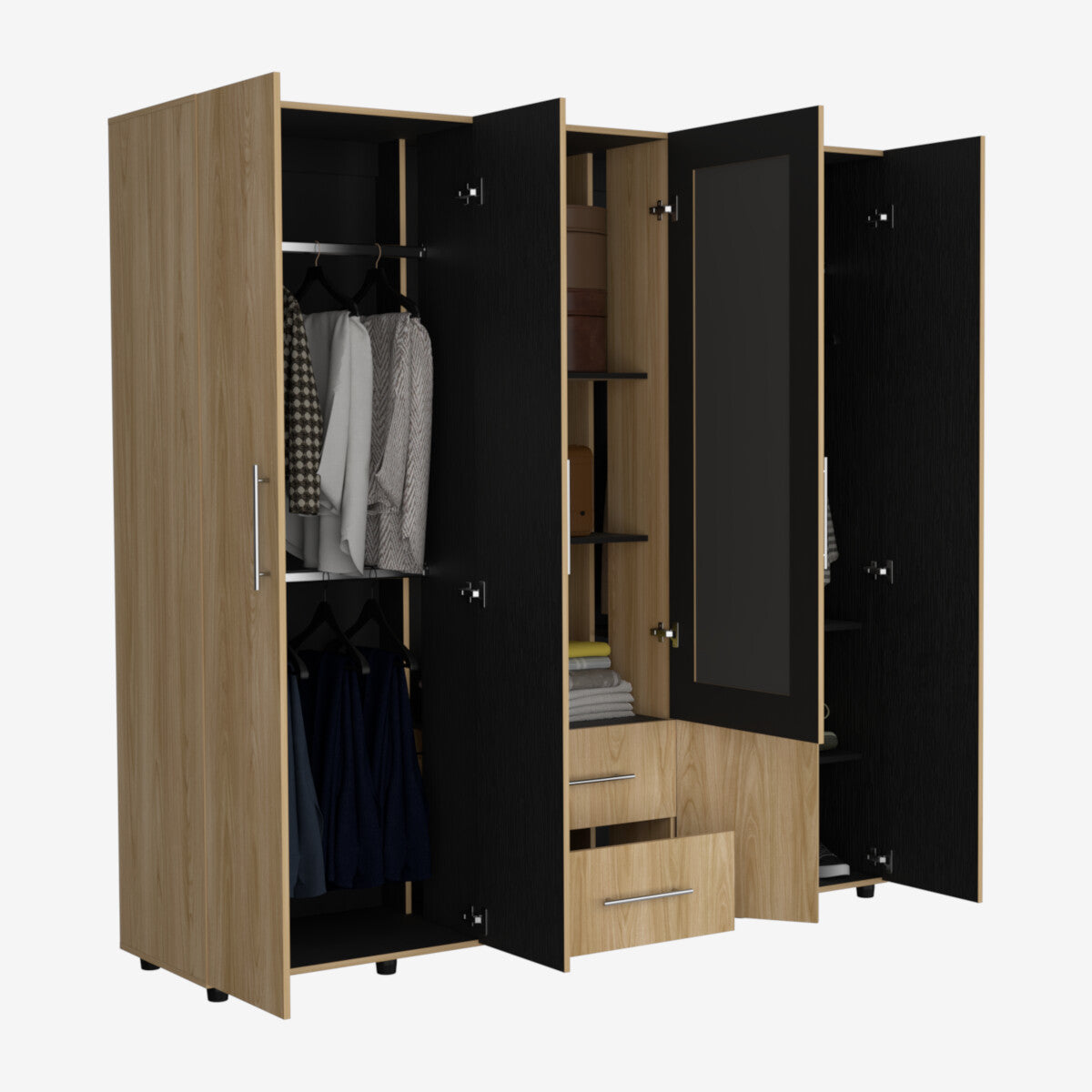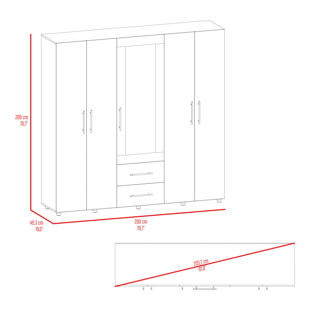 Sus cinco puertas mantienen todo oculto y en armonía, mientras el espejo central aporta luz, amplitud y ese toque elegante que transforma tu habitación. Fabricado en melamina resistente, combina durabilidad con una estética moderna que realza cualquier espacio.