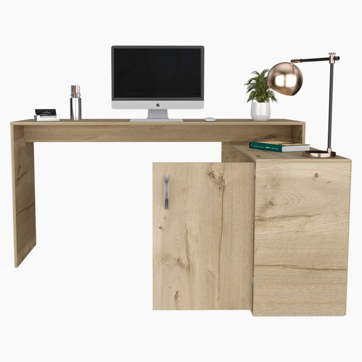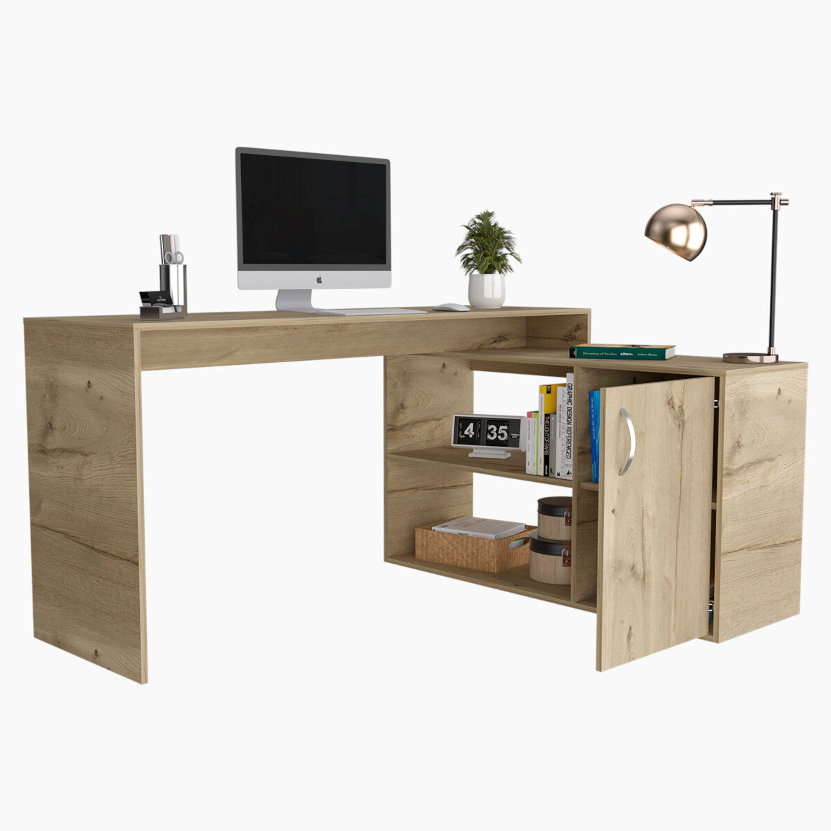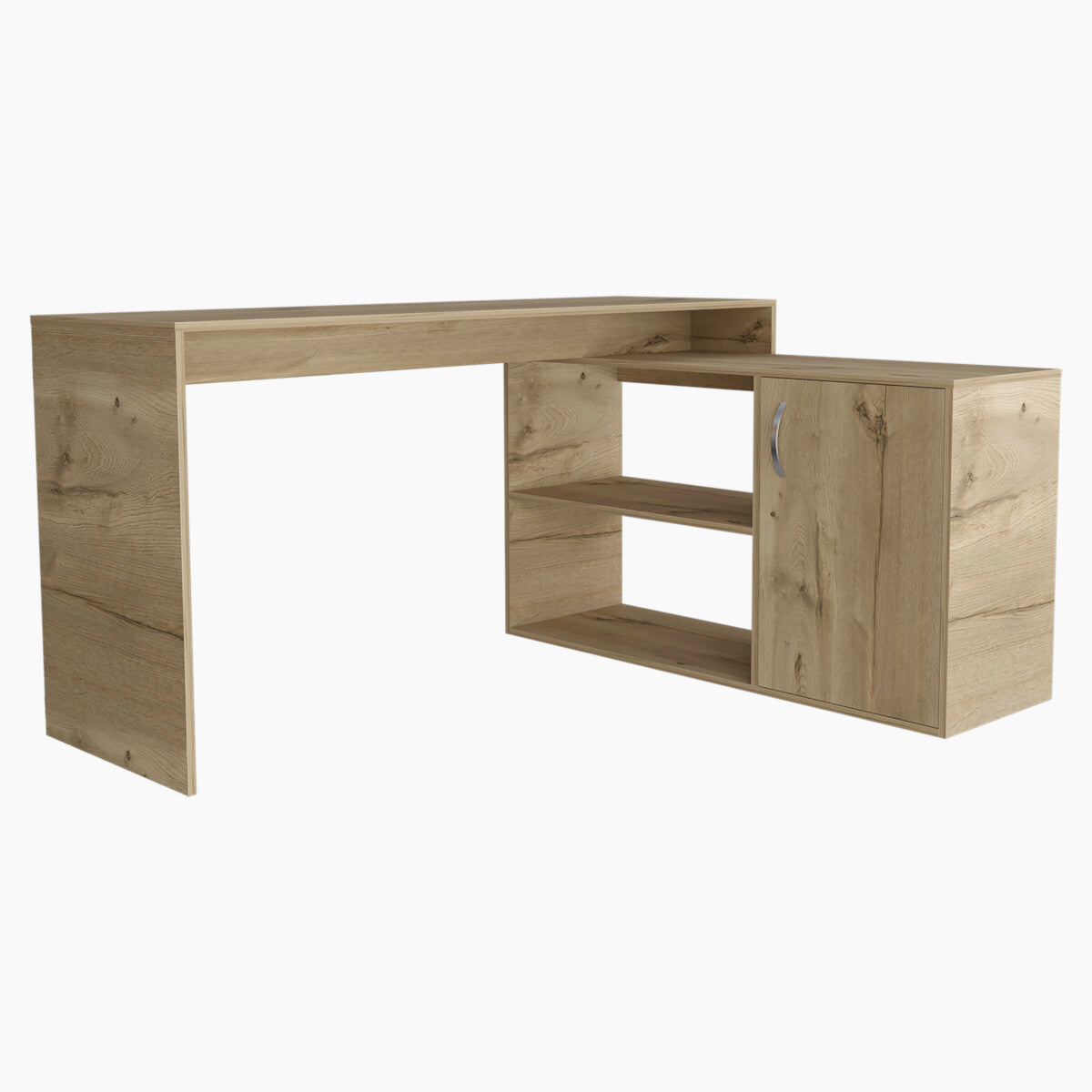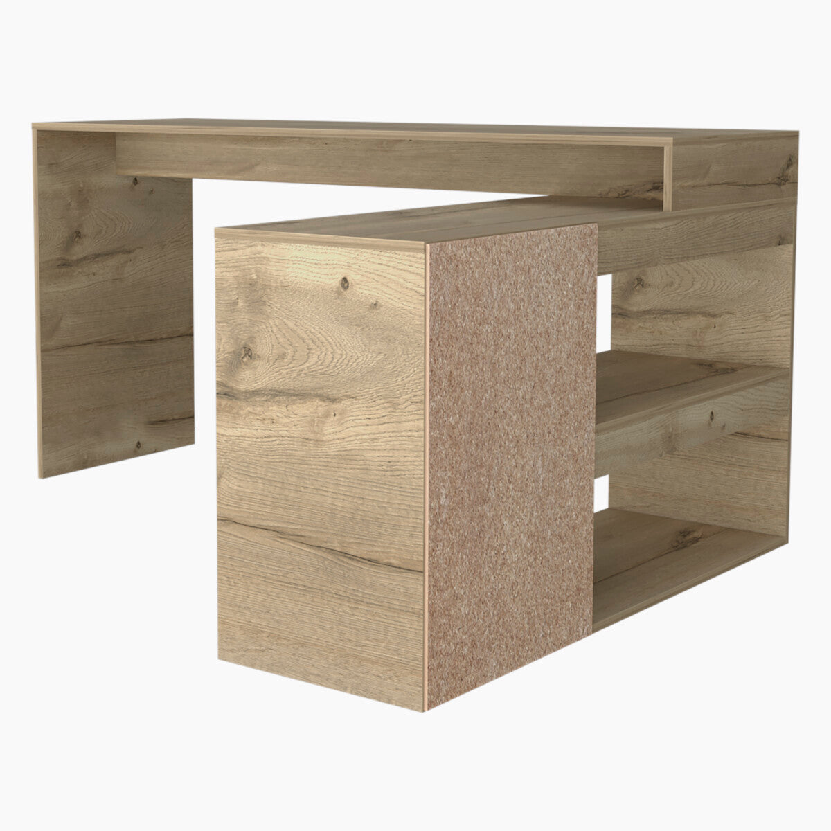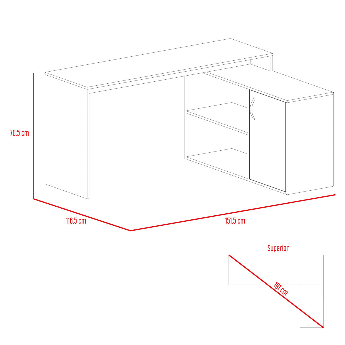 Este escritorio tipo “L” armable combina diseño moderno, funcionalidad y elegancia en un solo mueble. Ideal para tu home office, estudio o rincón creativo, ofrece amplia superficie para trabajar con comodidad y dos prácticos entrepaños donde organizar documentos, libros o accesorios. Además, cuenta con una puerta con espacio oculto para mantener todo en orden y libre de distracciones.